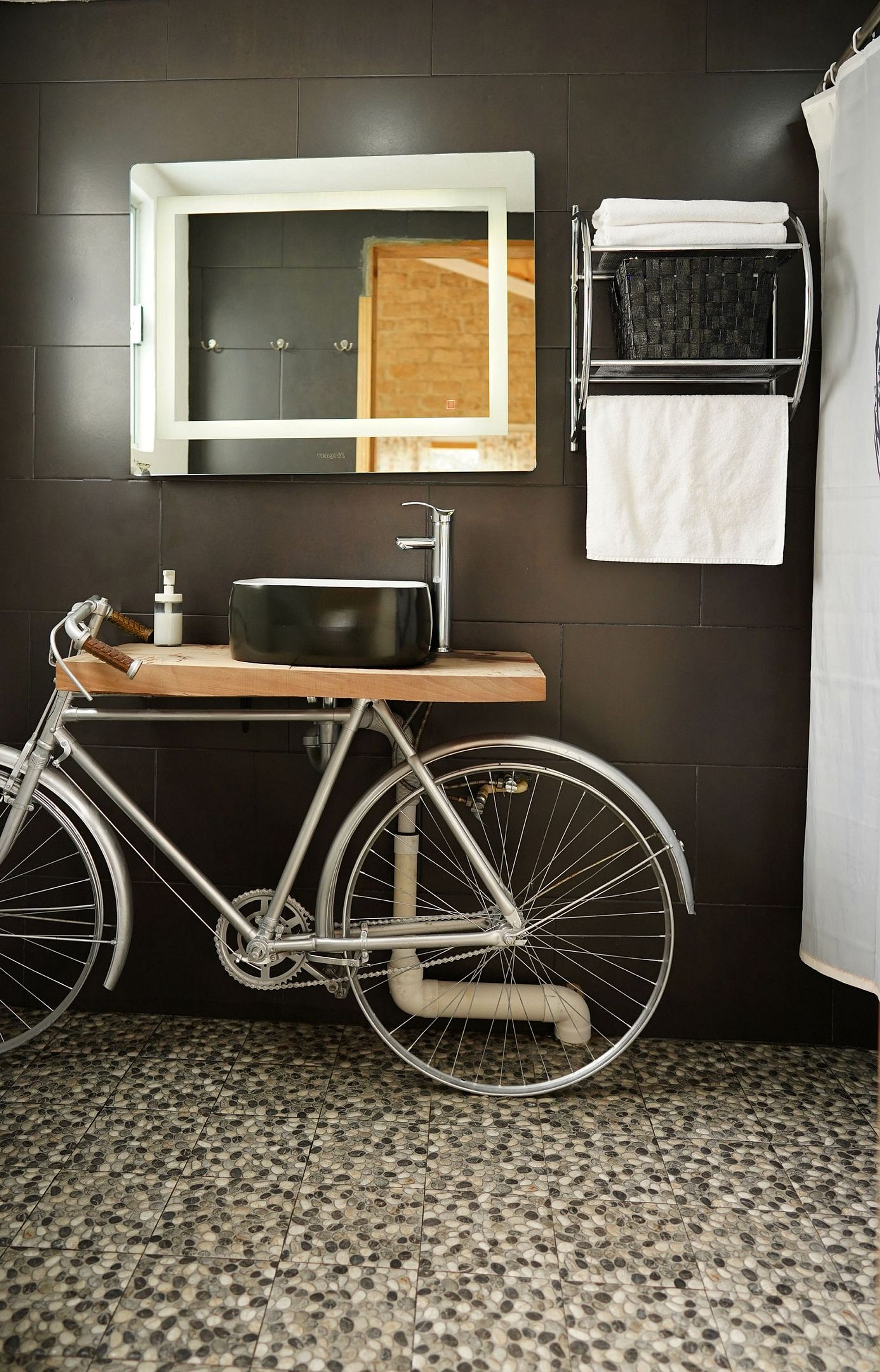 Hay una pendiente del estacionamiento a la cabaña.